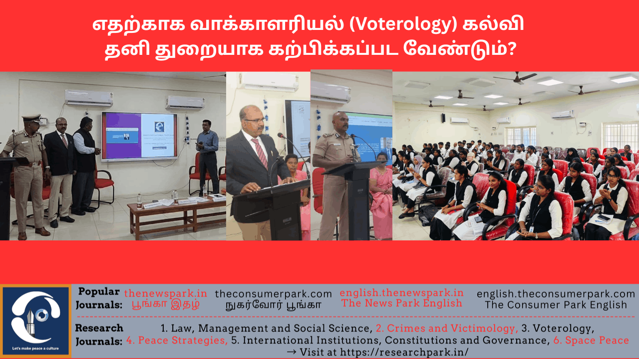 The discipline of political science emerged about 125 years ago when democratic forms of government began to spread in place of monarchies in countries around the world. Currently, monarchies have disappeared worldwide, and only democratic forms of government exist. However, it is not acceptable that the study of Voterology is merely a part of political science. Voterology is the learning and research related to votes, voters, and elections. Voterolism aims to create awareness among voters, protect true democracy, and pave the way for good governance and world peace, said Dr. V. Ramaraj, the member of the Tamil Nadu Lokayukta, who participated as the special guest.